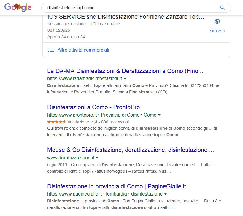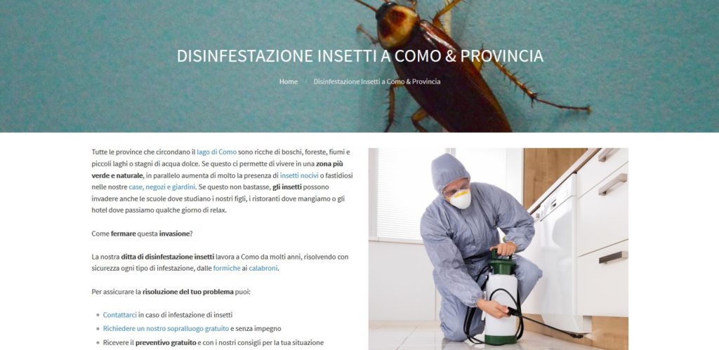 La Da-Ma Disinfestazioni è una ditta che si occupa di eliminare insetti, topi e altri animali invasivi, attivi nella provincia di Como. A metà del 2019 ho aiutato con il rifacimento del sito in WordPress mantenendo un budget molto basso, utilizzando template gratuiti e semplicità delle pagine. In parallelo ho iniziato un percorso di ottimizzazione del sito per i motori di ricerca, in modo da raggiungere più persone che hanno bisogno dei loro servizi di disinfestazione e derattizzazione. La parte SEO continuerà nei mesi successivi per rendere il sito sempre più completo e utile per chi cerca questo tipo di servizi a Como e province limitrofe.